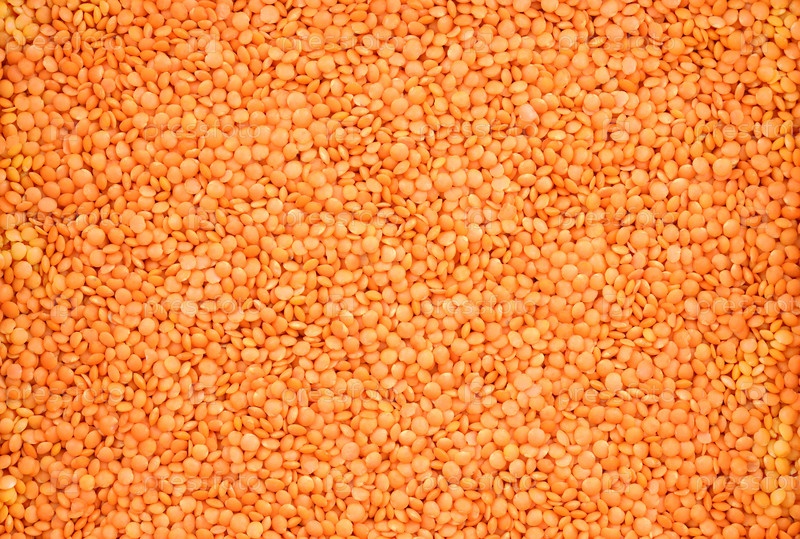 Чечевичная крупа, разложенная толстым слоем на горизонтальной поверхности