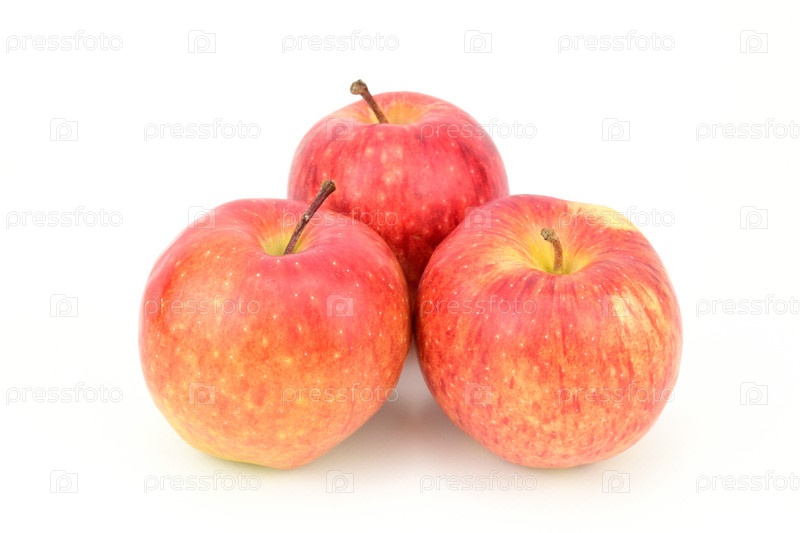 Три красных спелых яблока на белом фоне