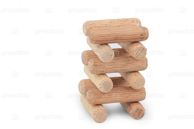 Набор деревянных шкантов, уложенных в виде колодца