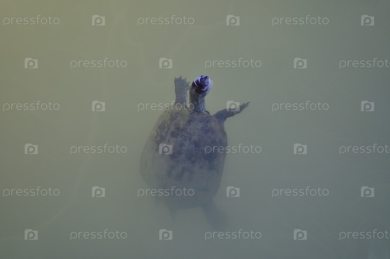 Маленькая черепаха высовывает нос из мутной воды