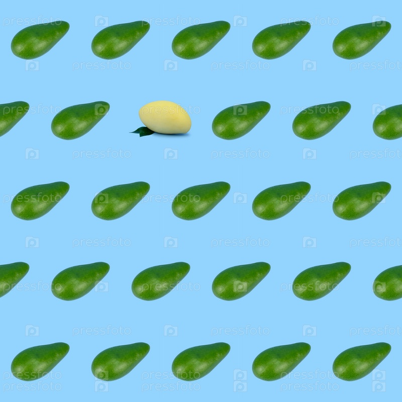 Бесшовный узор из зеленых авокадо и одного желтого манго