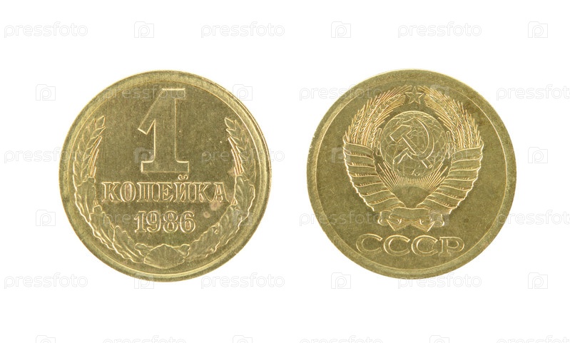 Металлическая монета достоинством в одну копейку, выпущенная в Советском Союзе