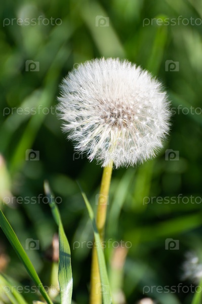 Пушистый белый цветок одуванчика на толстом стебле