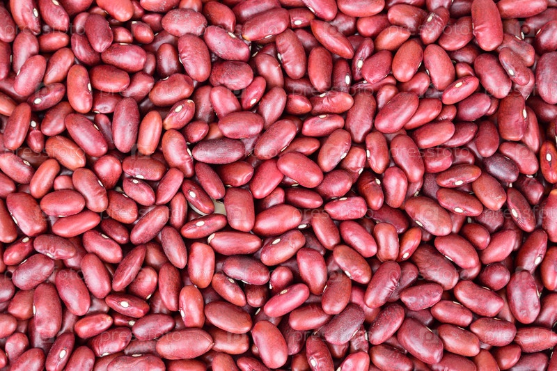 Вид сверху на толстый слой красной фасоли, разложенной на горизонтальной поверхности