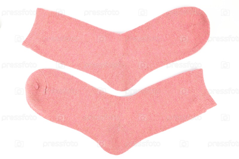 Пара розовых теплых шерстяных носков, изолированных на белом фоне