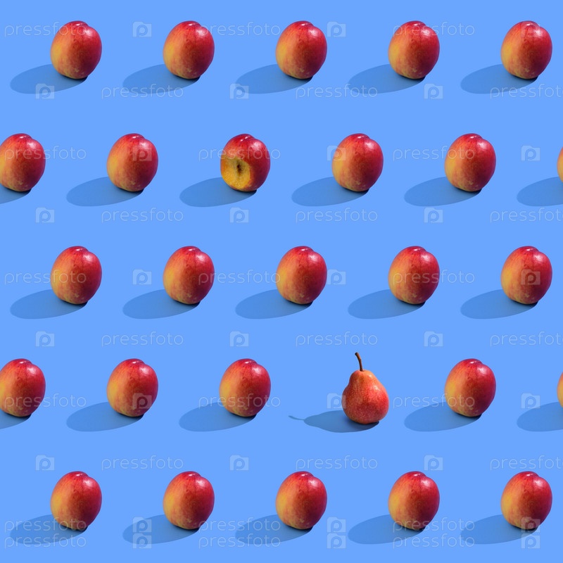 Бесшовный рисунок нектарина с жесткой тенью. Один кусочек нектарина. Одна желто-красная груша в одну линию