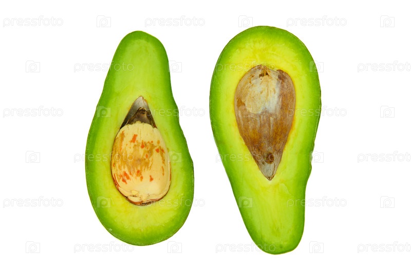 Авокадо, разрезанный пополам и положенный на горизонтальную поверхность срезом вверх
