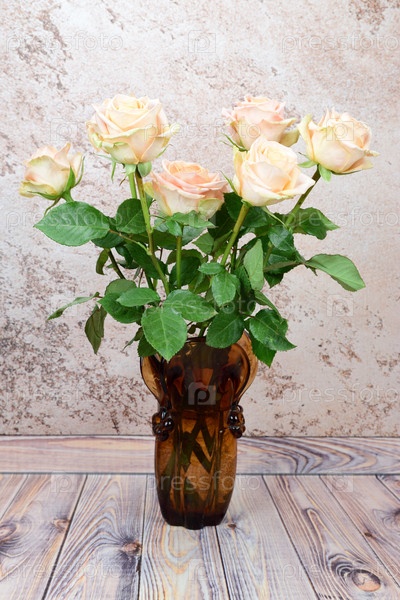Букет роз в коричневой стеклянной вазе