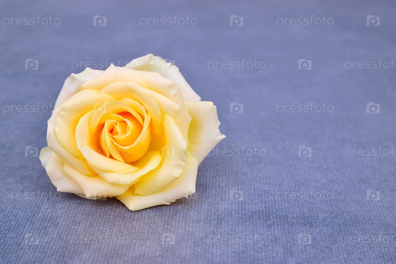 Бутон белой розы крупным планом на сером фоне