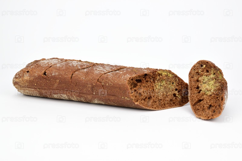 Багет из черного хлеба с чесноком, изолированный на белом фоне