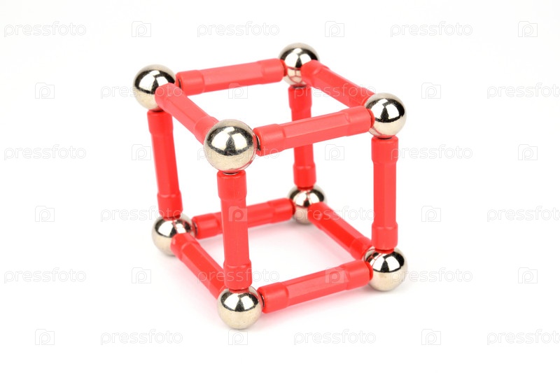 Куб из шариков и палочек магнитного конструктора, изолированный на белом фоне
