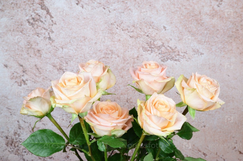 Верхняя часть букета роз на фоне бетонной стены