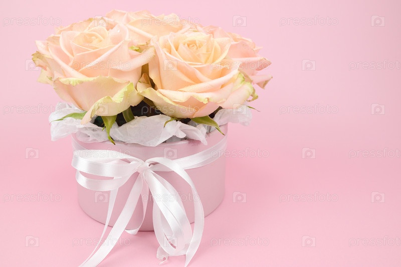 Букет срезанных роз в подарочной корзине