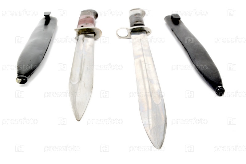 Вид спереди на лезвия двух штык-ножей для винтовки