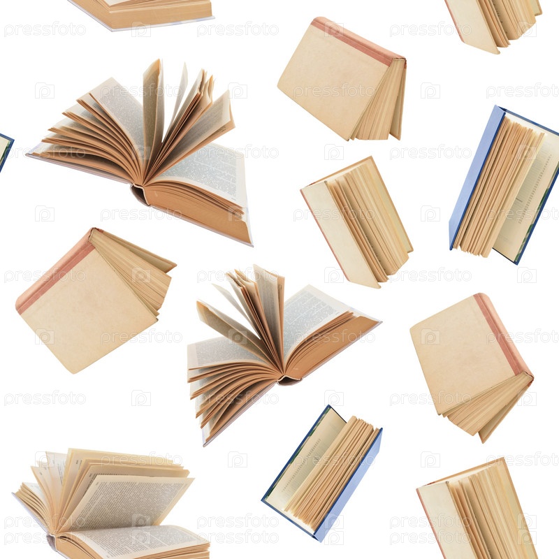 Бесшовный узор из книг в твердом переплете, сфотографированных в разных положениях, открытые и закрытые книги
