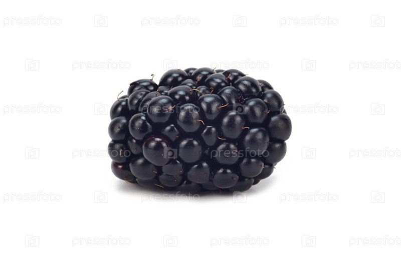 Одна ежевика, изолированная на белом фоне с легкой тенью под ней