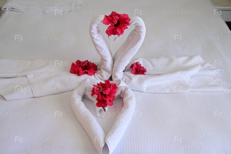 Фигура из накрахмаленных полотенец в гостиничном номере