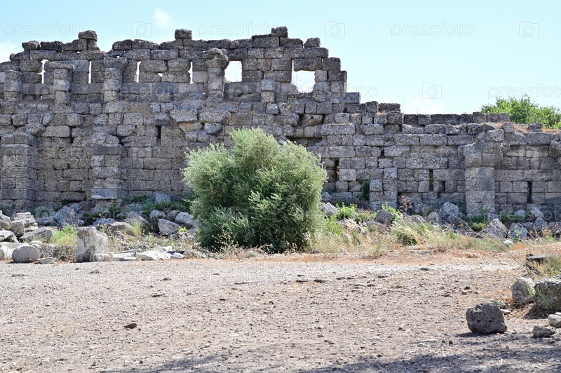 Разрушенная стена древнего здания, сложенная из больших каменных блоков