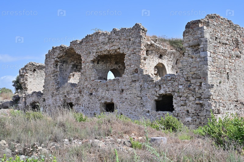 Вид сбоку на заброшенное двухэтажное здание древнеримской больницы