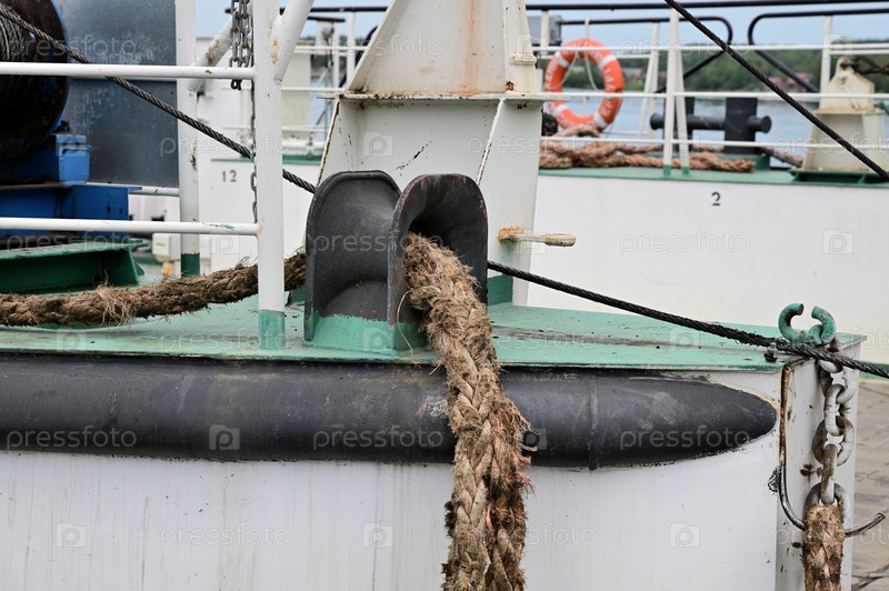 Толстый швартовный канат на автомобильном пароме