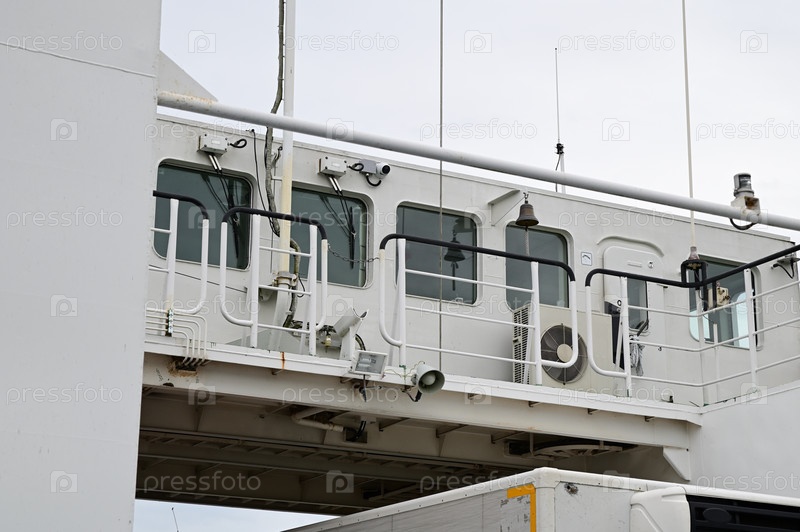 Иллюминаторы капитанской каюты на автомобильном речном пароме