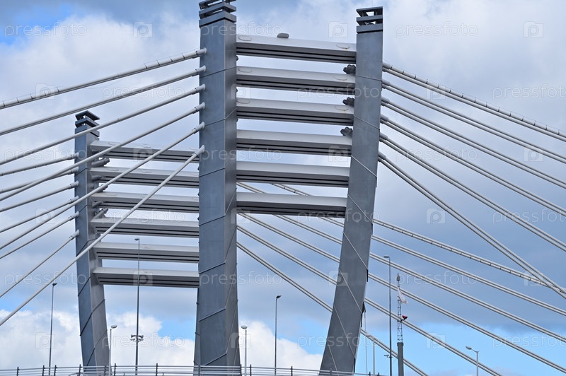 Пилоны вантового моста соединены с дорогой металлическими стержнями