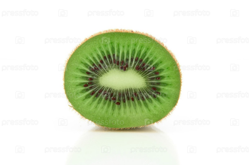 Половина киви, расположенная срезом к камере, с отражением снизу