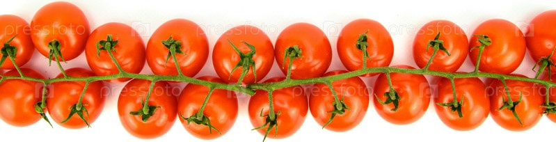 Вид сверху на две грозди кустовых томатов, выложенных в ряд