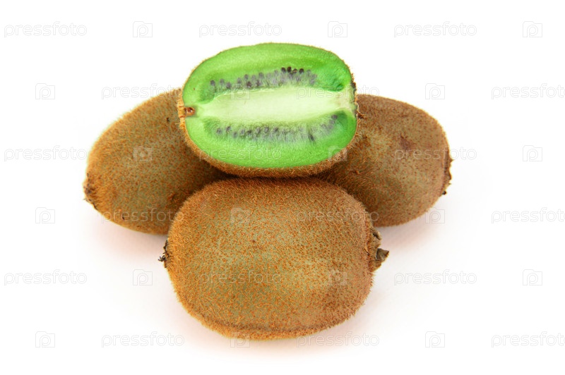Три целых плода киви и половинка киви сверху