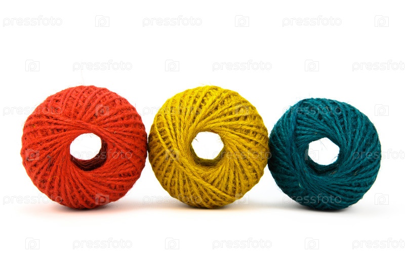 Три разноцветных мотка джутовой нити для вязания крючком