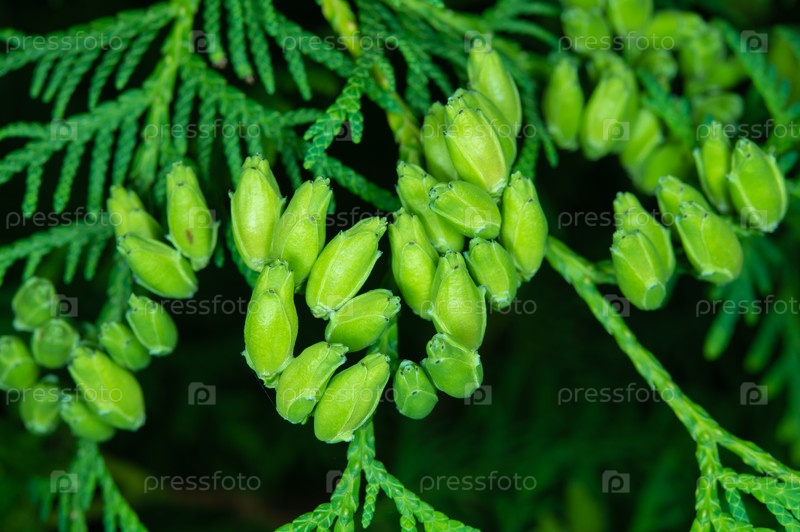 Маленькие зеленые шишки на туе