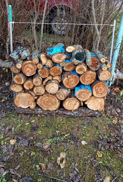 Поленница во дворе сельского дома осенью