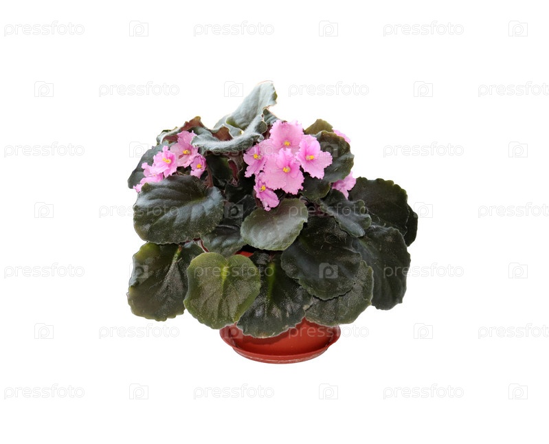 Цветы розовой фиалки в горшке - изолят на белом фоне
