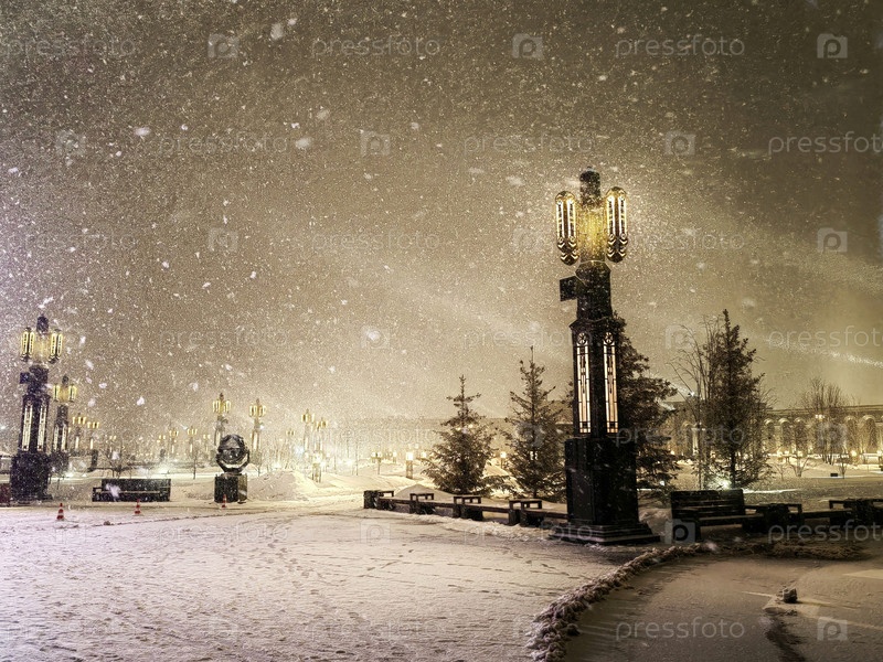 Снегопад в парке