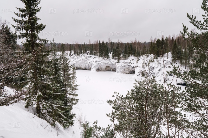 Зима в парке. Карелия Рускеальский заповедник зимой. В лесу идет снег