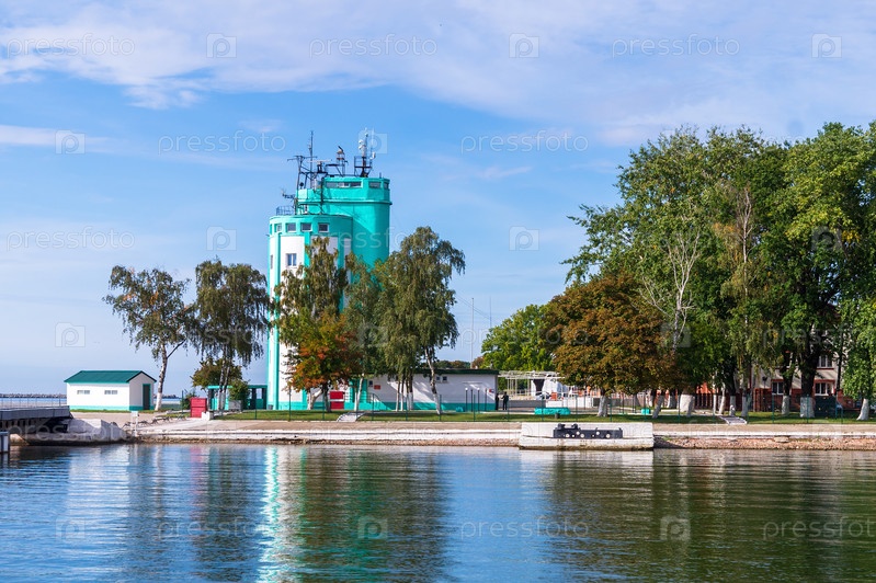 Балтийск, Калининградская область, Россия - 2022, 24 сентября: Портовая лоцманская вышка. Пост рейдовой службы Балтийской военно-морской базы