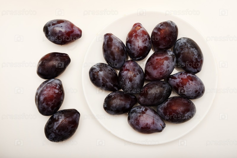 Свежие черные сливы на белой тарелке. Свежие вымытые сливы. Сочные фрукты