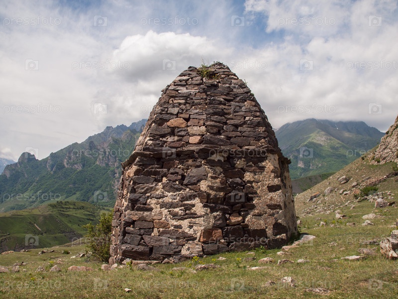 Старинный склеп кешене на горе в окрестностях села Верхняя Балкария в Черекском ущелье, Кабардино-Балкария, Россия