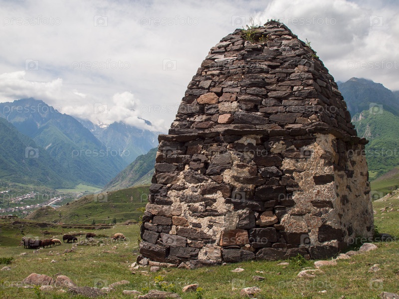 Старинный склеп кешене на горе в окрестностях села Верхняя Балкария в Черекском ущелье, Кабардино-Балкария, Россия