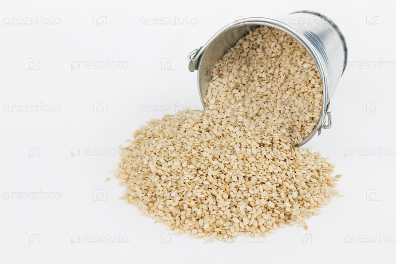 Семена кунжута высыпаются из ведра