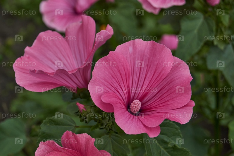 Цветок лаватера в крупном плане Лаватара цветет на лужайке сада