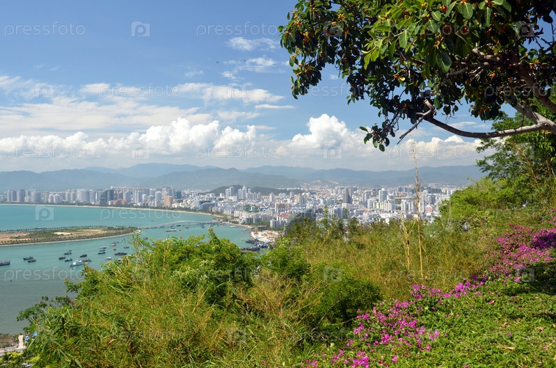 Китай остров Хайнань, город Санья, вид с воздуха на искусственный остров в форме