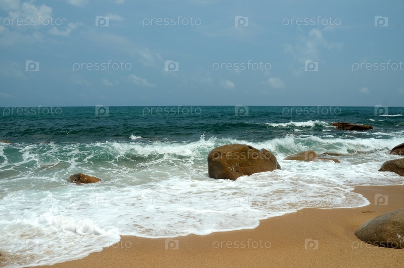 Скалы в море на острове Хайнань, Китай, май 2011 г