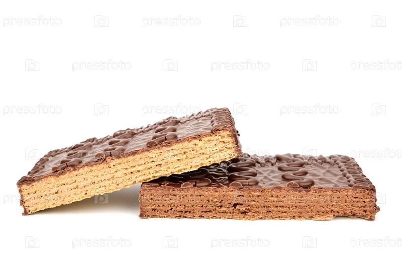 Два кусочка шоколадного вафельного торта, лежащие друг на друге