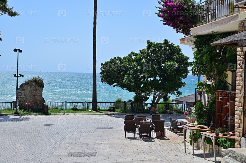 Улица на юге города, выходящая на море вдоль небольших прибрежных кафе