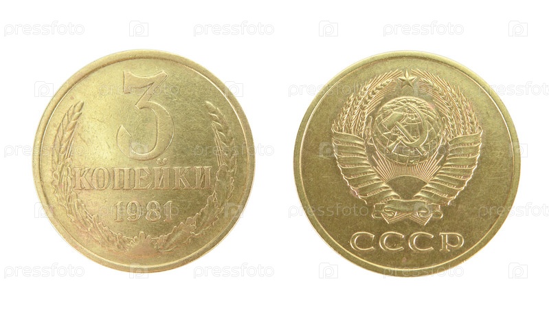 Металлическая монета номиналом 3 копейки, выпущенная в Советском Союзе
