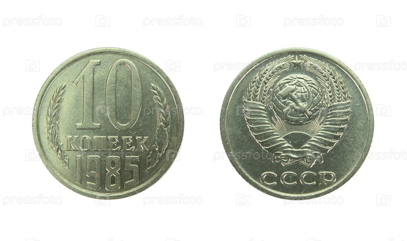 Металлическая монета достоинством в десять копеек, выпущенная в Советском Союзе