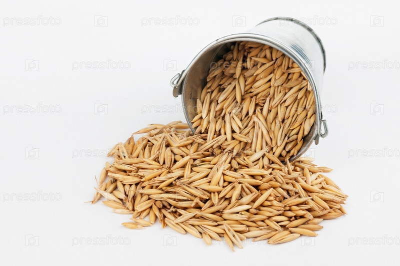 Зерна овса высыпаются из ведра