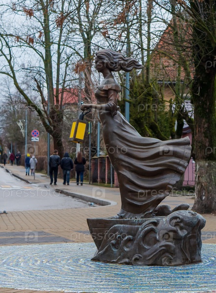 2022, 1 января: Бронзовая скульптура, Девушка, бегущая по волнам, держащая старинный фонарь. Автор Василий Фильшин