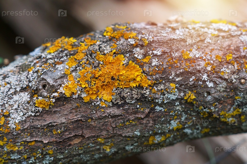 Грибы на дереве - Лишайник семейства Телосхистовые, вид рода Ксантория - Эпифит, обитающий на коре деревьев